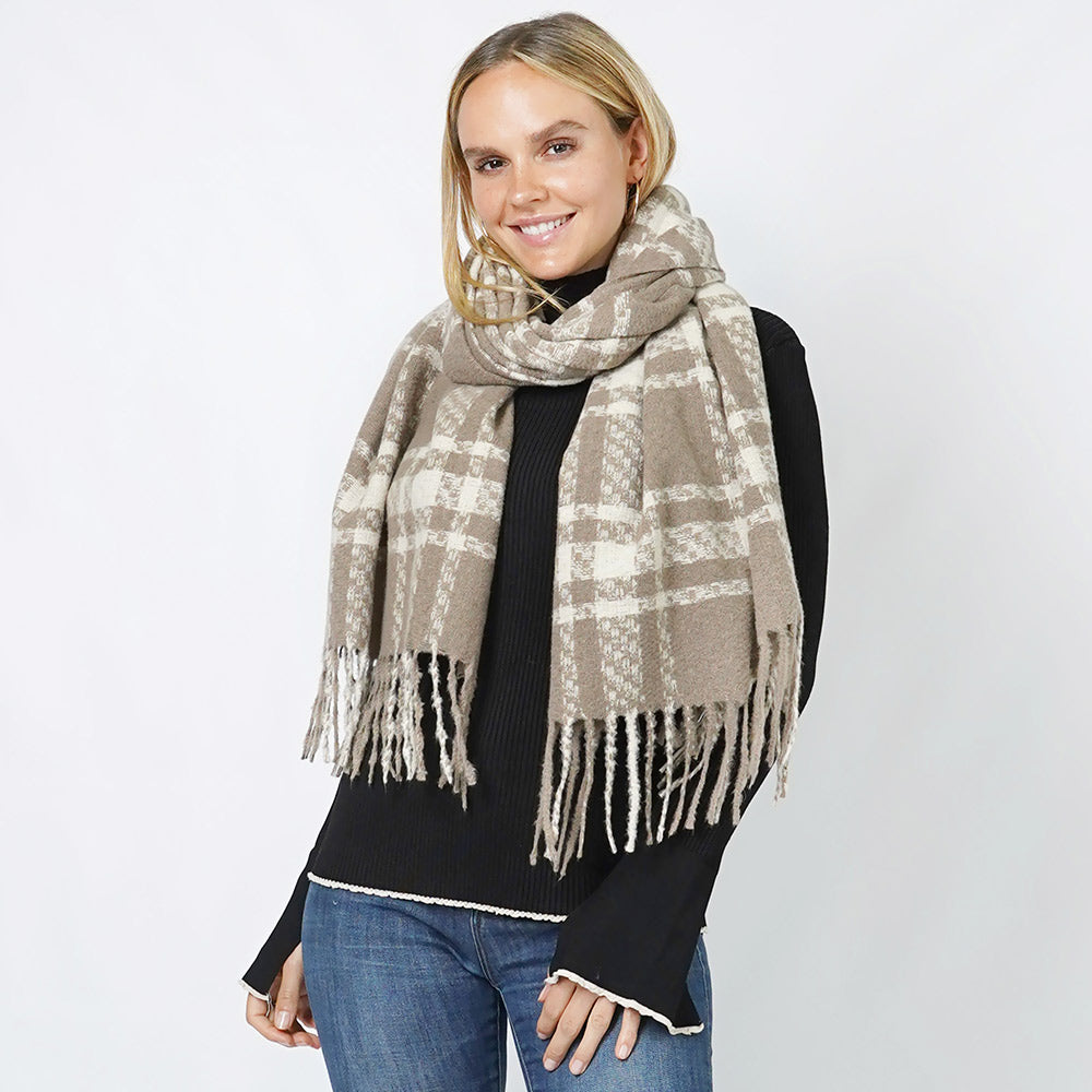 Introducing our Fall & Winter Scarves! Stay warm and stylish with our Plaid Oblong Scarf/Shawl. Made with luxurious material, this scarf brings you ultimate comfort while adding a touch of sophistication to any outfit. Perfect for those chilly days and nights, don't miss out!